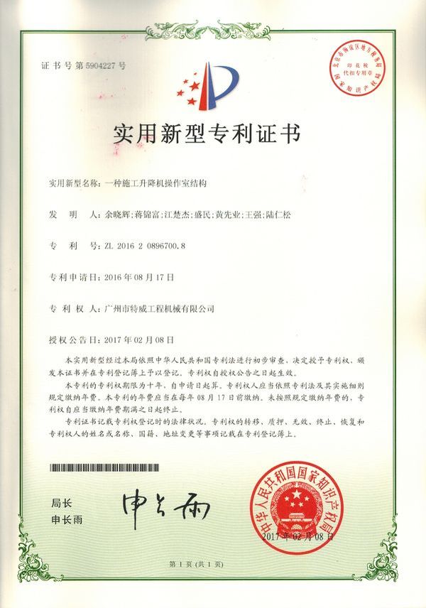廣州市特威工程機(jī)械有限公司地處廣州市白云區(qū)神山鎮(zhèn),廣清高速神山出口附近,是一家施工升降機(jī)的專業(yè)生產(chǎn)廠家。公司成立于2011年,占地100000多平方米,注冊(cè)資金1060萬(wàn)元,現(xiàn)有員工300余人其中工程技術(shù)人員33人,高級(jí)技術(shù)人員52人。